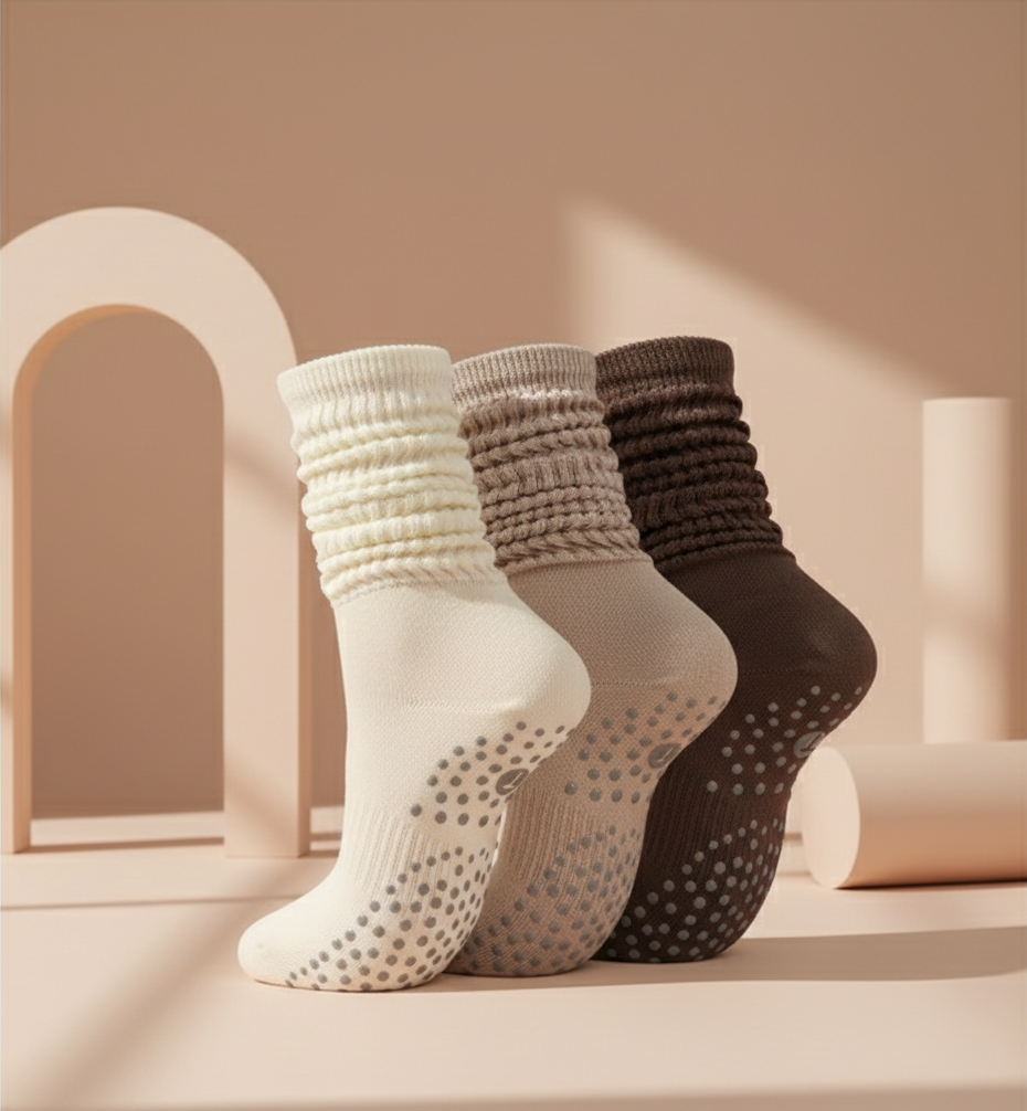 Grip Pilates Socks for Women – Long Scrunch Slouch Socks for Yoga & Barre – Experience the perfect blend of style and stability. These premium Pilates socks feature a high-performance grip sole